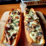 Baguette gratinée aux champignons et fromage, plat savoureux et réconfortant
