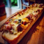 Une délicieuse baguette gratinée remplie de légumes, de viande et de fromage, parfaite pour un repas réconfortant.