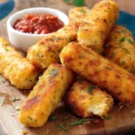 Bâtonnets au fromage dorés et croustillants, idéal en apéritif.
