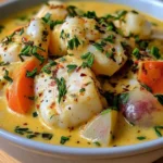 Salut, mes amis! Prêts à plonger dans un plat qui va vous faire craquer? Aujourd’hui, on va parler de la Blanquette de poisson à la crème safranée. Pendant que vous vous demandez si c’est un plat de restaurant chic ou un dessert secret de grand-mère, laissez-moi vous dire que c’est bien plus simple et tout aussi délicieux. Alors enfilez votre tablier, mettez votre meilleur sourire et laissez-moi vous guider dans cette aventure culinaire!