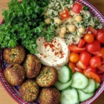 D’abord, laissez-moi vous dire que ce Bol de Falafel et Taboulé est la solution quand vous avez envie de quelque chose de frais et de léger, mais qui ne ressemble pas à un plat de régime. En plus, c’est super polyvalent : vous pouvez le personnaliser selon vos envies. Ajoutez-y des légumes de saison, une sauce piquante ou même un peu de feta si l’humeur vous en dit. Ce plat a du punch, et il va certainement devenir la star de vos diners !