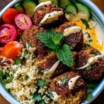 Salut à tous les amateurs de cuisine ! Aujourd’hui, on va parler d’un plat qui va faire danser vos papilles : le Bol de falafels et couscous. Je vous jure, ce n’est pas de la haute gastronomie, mais ça va vous faire passer pour un pro en cuisine (et sans même que ça soit compliqué). Prêt à transformer votre cuisine en temple de la bouffe ? Parce qu’ici, on ne joue pas ! 👩🍳🙌