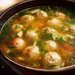Laisse-moi te dire un petit secret : le Bouillon avec des petites boulettes n’est pas seulement delicieux, c’est une véritable bouée de sauvetage pour les soirs de semaine pressés. En quelques simples étapes, tu obtiens un plat qui semble avoir été mijoté par ta grand-mère pendant des heures. Les boulettes de viande sont bien assaisonnées, moelleuses et plongées dans un bouillon très réconfortant et savoureux. C’est tout ce dont tu as besoin lorsqu’il commence à faire froid dehors.