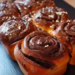- Dégaze et étale : Dégaze la pâte et étale-la en un rectangle. Étale le beurre ramolli sur la surface, saupoudre le mélange de cassonade et de cacao, et enroule la pâte.