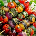 Et voilà, vous avez réussi ! Ces Brochettes de légumes au pesto vert grillé sont non seulement délicieuses mais aussi extrêmement simples à faire. Qui aurait cru que vous pouviez dîner comme un pro en si peu de temps ? Partagez-les avec des amis, une bonne bouteille de rosé et le ciel s’illumine. Qui sait, vous pourriez même devenir la reine ou le roi des barbecues dans votre quartier. À vous d’en faire le plat culte de vos soirées d’été ! Bonne dégustation, et n’oubliez pas de me tenir au courant de vos succès culinaires ! 🍽️