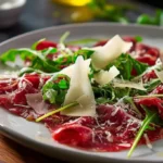 Salut, mes amis gourmands ! Aujourd’hui, je vous invite à plonger dans l’univers délicieusement simple du Carpaccio de bœuf au parmesan et roquette. Vous pensez que ce plat est réservé aux restaurants chics ou aux dîners sophistiqués ? Détrompez-vous ! C’est carrément le genre de plat qui dit : « Je suis élégant, mais je n’ai rien de compliqué ! » Préparez-vous à impressionner vos amis, vos proches ou même votre chat (qui a dit que les chats n’étaient pas de bons juges de la cuisine ?). Alors, enfilons nos tabliers, on va s’amuser !