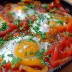 Un plat simple et délicieux d’œufs cuits dans une riche sauce tomate avec des poivrons, parfait pour le brunch ou le dîner.