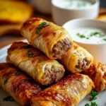 D’accord, parlons de ce qui rend ces petits cigars si irrésistibles. Pour commencer, la combinaison de viande et de fromage, c’est littéralement la recette du bonheur! Écoute, il n’y a rien de mieux que de croquer dans une pâte dorée pour découvrir un mélange savoureux de viande hachée et de fromage qui fond dans la bouche. C’est réconfortant, c’est délicieux et ça fait saliver rien qu’à y penser !