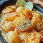 Hey, les amis ! Si vous êtes ici, c’est que vous avez peut-être déjà salivé rien qu’à penser à ces Pommes de terre fondantes au lait de coco et au citron vert. Je vais vous dire un secret : ce plat n’est pas seulement super bon, il est aussi tellement facile à préparer. Pensez-vous que vos compétences culinaires doivent être dignes d’un chef étoilé pour réaliser ce chef-d’œuvre ? Détrompez-vous ! Avec cette recette, vous allez impressionner tout le monde, même votre grand-mère qui pensait que le micro-ondes était la seule invention désirable dans la cuisine.