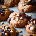 Des cookies irrésistibles au chocolat noir, noisettes et praliné, parfaits pour toute occasion.