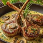 Savourez des côtelettes d’agneau juteuses accompagnées d’une sauce crémeuse aux champignons, parfaite pour un dîner en famille.