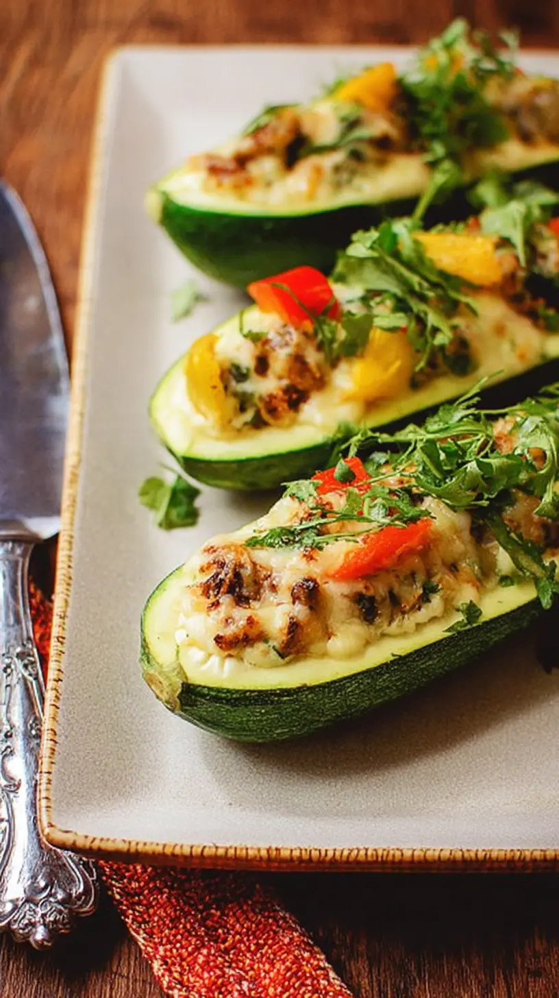 Pour servir, présentez les courgettes farcies dans un plat de service. Vous pouvez les garnir d’herbes fraîches comme du persil ou du basilic pour une touche de couleur et de saveur. Accompagnez-les de riz ou de pain croustillant pour un repas complet.