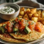 Une délicieuse crêpe garnie de saumon fumé, avocat crémeux et fromage frais, parfaite pour un repas chic mais facile.