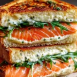 3. Assembler le sandwich : Étalez ce mélange sur l’intérieur d’une tranche de pain. Ajoutez le saumon fumé, quelques feuilles de roquette, puis refermez avec la deuxième tranche de pain (beurre vers l’extérieur, les amis!).