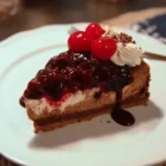 Un gâteau au fromage crémeux avec une croûte croustillante, du chocolat fondant et des cerises juteuses, parfait pour toute occasion.