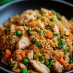 Un délicieux fried rice au poulet, facile et rapide à préparer, rempli de saveurs et de textures.