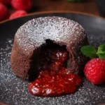 Un délicieux fondant au chocolat noir avec un cœur de framboise juteux qui fera fondre n’importe quel cœur.