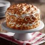- Dresse le gâteau en alternant les couches de gâteau et de meringue.