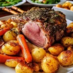 Gigot d’Agneau Rôti aux Herbes, Pommes de Terre et Carottes