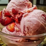 Une délicieuse glace à la fraise crémeuse et naturelle, parfaite pour l’été.