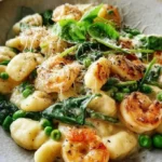 Gnocchis Alfredo avec Crevettes, Épinards et Petits Pois