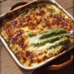 Un délicieux gratin d’asperges vertes avec une béchamel crémeuse et du parmesan doré, facile à préparer et parfait pour émerveiller vos invités.