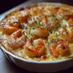 Un plat élégant et savoureux de gratin de noix de Saint-Jacques et crevettes, parfait pour impressionner vos invités.