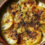Un gratin réconfortant de pommes de terre fondantes, nappé d’une crème onctueuse et rehaussé de moutarde, parfait pour toute occasion.