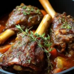 Voilà, amis gourmands ! Vous êtes maintenant le fier chef de vos propres jarrets d’agneau braisés aux herbes. Que ce soit un dîner intime ou un repas en famille, ce plat est un vrai câlin à chaque bouchée. N’oubliez pas de le partager avec quelqu’un que vous aimez… ou mangez-le tous seul, je ne juge pas ! Bon appétit et à la prochaine pour plus de délices !