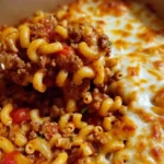 Un plat réconfortant de macaronis, viande hachée, tomates et fromage gratiné, parfait pour les soirées en famille.