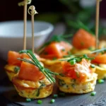 L’une des meilleures choses avec ces minis omelettes, c’est qu’elles sont totalement polyvalentes. Vous pouvez les déguster chaudes ou froides, dans un buffet ou en entrée, et elles s’adaptent à toutes les saisons. Imaginez l’odeur des œufs frais mélangés à la ciboulette, suivie de la surprise fumée du saumon dans chaque bouchée. La combinaison est un vrai mélange des saveurs qui fait de ce plat une petite fête en bouche.