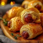 Des mini feuilletés croustillants avec de petites saucisses, parfaits pour vos apéros.