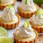 Mini tartes au citron vert avec crème fouettée, un dessert frais et délicieux.