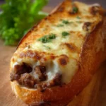 Vous penseriez que le Pain garni au bœuf haché, gratiné est un plat de restaurant chichiteux ? Laisse-moi te dire que tu es loin du compte. Ce petit délice est la parfaite combinaison de revigorant et de réconfortant. Imagine-toi avec un bout de baguette croustillante rempli de bœuf juteux et de fromage doré coulant… Mmmm, ça suffit pour mettre l’eau à la bouche, n’est-ce pas ? Alors, enfile ton tablier, prépare-toi à porter un peu de fromage sur ton visage (c’est pour le style, après tout), et cuisinons ensemble !