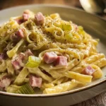 Pâtes aux Poireaux, Ail et Jambon dans une Sauce à la Moutarde