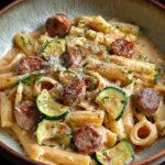 Et voilà, vous avez créé un plat qui impressionnera même les plus sceptiques ! Cette Pasta with sausages and zucchini dans une sauce crémeuse épicée n’est pas juste un repas, c’est une expérience culinaire. Faites-le pour vous-même, pour votre famille, ou même pour faire un joli repas en tête-à-tête. Allez, bon appétit et n’oubliez pas : cuisinez avec amour et un petit sourire. Vous êtes génial(e) dans la cuisine !