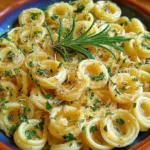 Une recette simple et délicieuse de pâtes à l’ail et à l’huile d’olive, aromatisée avec des herbes fraîches.