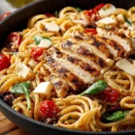Et voilà, mes amis, vous venez de préparer un plat de Pâtes au Poulet Grillé qui non seulement régalera votre ventre mais aussi votre esprit. C’est une recette pleine de chaleur et de convivialité, parfaite pour une soirée entre amis ou une floraison romantique. N’oubliez pas de le partager avec quelqu’un que vous appréciez (ou pas, si vous voulez garder tout pour vous, je ne vous juge pas). Allez, à bientôt pour de nouvelles aventures culinaires ! 🍽️