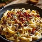 Pâtes crémeuses aux champignons et noix grillées