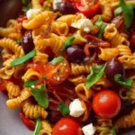 Écoute, ce n’est pas juste un plat de pâtes, c’est une fête dans ton assiette ! Imagine ça : des pâtes parfaitement al dente, plongées dans une sauce pleine de pep’s, avec des tomates juteuses, des poivrons rôtis et des olives qui explosent de saveurs. Chaque bouchée est comme une petite danse méditerranéenne dans ta bouche. Et je ne te parle même pas des arômes qui vont envahir ta cuisine… Adieu, air frais, bonjour odeur divine !
