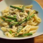 Pasta, Poulet et Asperges dans une Sauce Béchamel à la Moutarde