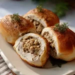 Un plat réconfortant de petits pains farcis avec du dindon savoureux, évoquant des souvenirs nostalgiques de repas en famille.