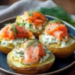 Des pommes de terre délicieusement farcies au saumon fumé, fromage frais et aneth, parfaites pour tous vos repas.