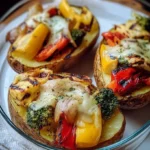 Ces Pommes de terre aux légumes grillés sont le genre de plat qui fait battre le cœur des gens. Pourquoi, tu demandes ? Parce que, franchement, rien ne vaut un bon repas où chaque bouchée te fait sourire. Imagine des pommes de terre dorées à souhait, farcies de légumes grillés savoureux, le tout, couronné de fromage fondu qui te fait rêver. Oui, je sais, ta bouche est déjà en train de saliver !