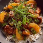8. Garnissez et servez : Saupoudrez de graines de sésame, de coriandre fraîche et d’oignons verts. Et voilà ! C’est prêt à être servi.