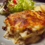 Un plat réconfortant aux couches fondantes de pommes de terre et à la viande savoureuse avec une sauce crémeuse.