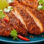 Un poulet mariné aux piments croustillants et au zeste de lime, offrant une explosion de saveurs.