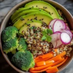 Voilà, mon ami ! Tu as maintenant ton Bol vibrant de quinoa avec brocoli, avocat et légumes frais. C’est coloré, c’est bon pour la santé, et surtout, c’est super simple à réaliser. Alors, qu’est-ce que tu attends ? Invitez des amis, mettre une musique entraînante et savourez ce délice ensemble. Bon appétit ! 🍽️