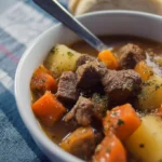Un ragoût de bœuf tendre mijoté avec des légumes et des épices, parfait pour un repas réconfortant.