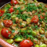Un plat traditionnel égyptien de fèves fava, assaisonné d’ail, de citron et d’épices, parfait pour le brunch ou comme déjeuner rapide.